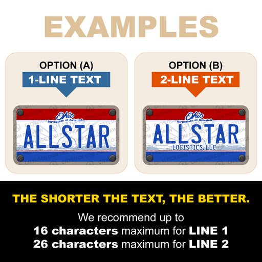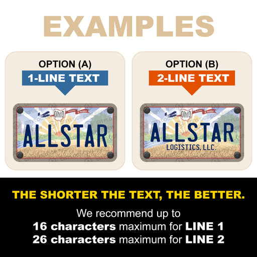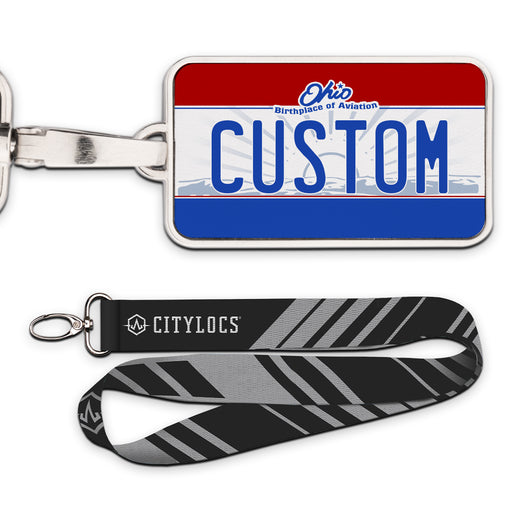 Ohio 2022 Plate Pendant • Customizable text• Printed leather in a metal frame• 2 3/8" x 1 1/4"• Lanyard Included