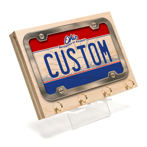 5x7 wood key rack with Ohio license plate design. It can be customized with any name. 4 key hooks .75" thick plywood.