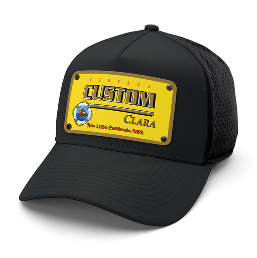 Pacific Beverage Label Custom Hat Customization Details:20-letter maximum Please note: Using fewer letters will result in a more authentic license ...