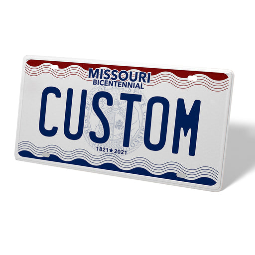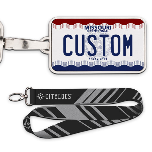 Missouri 2018 Plate Pendant • Customizable text• Printed leather in a metal frame• 2 3/8" x 1 1/4"• Lanyard Included