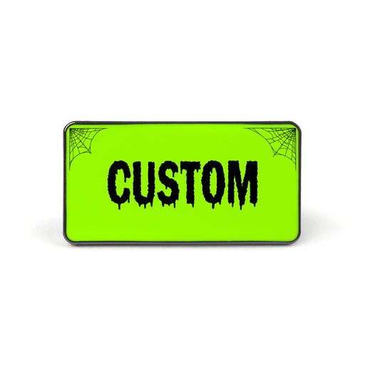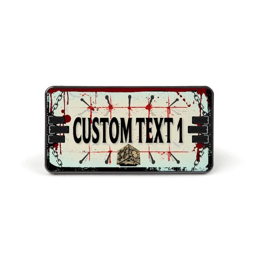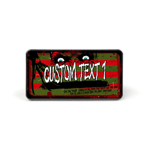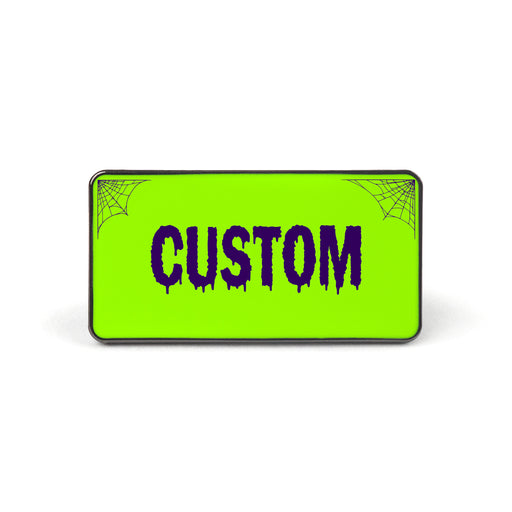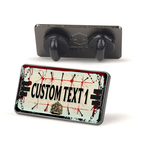 🩸 Product Description Put your name in the spotlight — horror style. Our Custom Horror Universal Enamel Pins take the look of a spooky license pla...